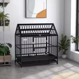 PawHut 48 Inch Heavy Duty Dog Crate On Wheels W/ Removable Tray - Openable Top | TJ Hughes Black