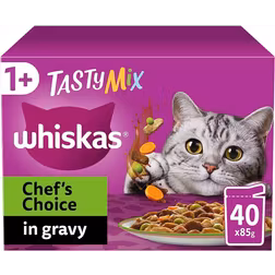 whiskas Tasty Mix 1+Chef´s Choice in Gravy 40x85g Pouches, Adult Cat Food