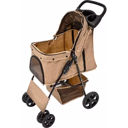 Monster Shop Monstershop Pet Stroller with Rain Cover- Woven Beige