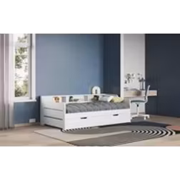 Noomi Enzo Single White Wooden Day Bed with Trundle