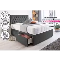 SR LIVING LTD 3FT Grey suede Divan Bed with mattress