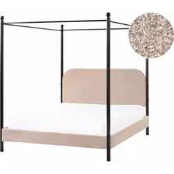 Beliani Four Poster Bed Boucle Dannemois 140 X 200 Cm Eu Double Taupe