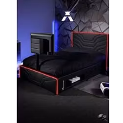 X Rocker Oracle Neo Fibre Esport Upholstered Double Tv Bed Frame With Led Lights - Fits Up To 55 Inch Tv - Black