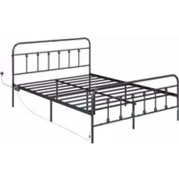 HOMCOM Bed Frame With LED Lights And Charging Station - Black - King | TJ Hughes