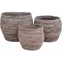 Grey round cornleaf storage basket House Nordic Tivoli (x3) - Gris - 24x24x22 cm