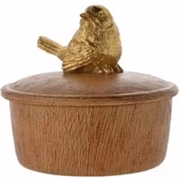 Hestia Wood Effect Trinket Box with Gold Bird in Brown - One Size