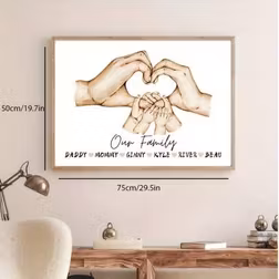 SHEIN 1pc Family Name Poster, Customized Personalized Family Member Hands Wall Art Canvas Poster For Home Decor, Canvas Prints For Living Room Bedroom Kitch