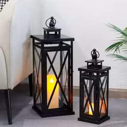 SHEIN Set Of 2 Empty Metal Candle Lantern 50 Cm& 28 Cm High Metal Candle Holder Hanging Lanterns With Tempered Glass Perfect For Indoor Outdoor Home Decor P