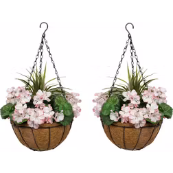 Lily Manor Pink Geraniums Coco Coir Hanging Baskets 52cm 20in Artificial Plant