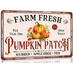 SHEIN Farm Fresh Pumpkin Autumn Patch Vintage Metal Tin Sign – Rustic Halloween Wall Decor For Home, Kitchen, Bar, Or Farmhouse | 8x12 Inch Retro Poster Wit