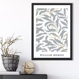 ARTZE William Morris Sage Green Willow Art Print / Black Frame / SIZE: A3 in Pale Green