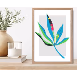 Artze Wall Palm Leaf Blue Green A4 Framed Art