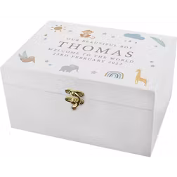 Personalised Safari Animals White Wooden Keepsake Box - One Size