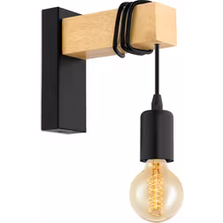 Black, Natural, Brown, Metal, Wood, Steel, Lamp Socket: E27