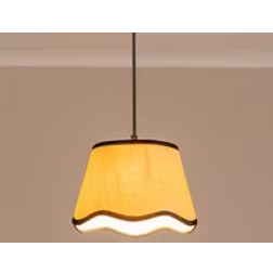 Dutton Natural Fabric Scallop Edge Small Lamp Shade with LED Bulb - Black - One Size