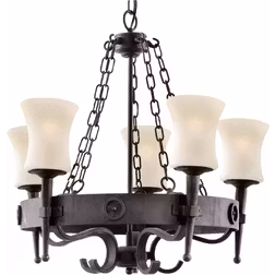Searchlight Electric's ceiling lamp is made from glass. This chandelier is mainly intended for indoor use and can change the lighting of a whole room.