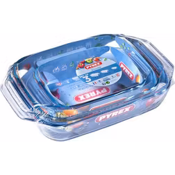 Rectangular,Oven Safe, BPA-Free, With Handle, Freezer Safe, Stackable, Microwave Safe, Dishwasher Safe, Glass, Blue, Transparent