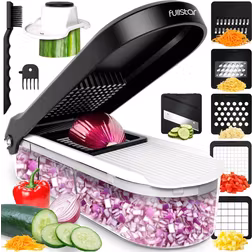 Vegetable Chopper Vegetable Cutter Mandoline Vegetable Slicer - Veggie Onion Salad Food Chopper Manual - Potato Chipper - Veg Chopper and Dicer - Kitchen Tools & Gadgets (6-in-1 Compact White)