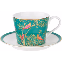 Sara Miller Chelsea Tea Cup & Saucer Green Birds Design Boxed From Portmeirion