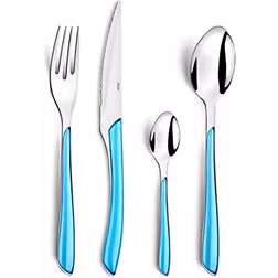12 Spoons, 6 Knives, 6 Forks,Dishwasher Safe, Stainless Steel, Material Handle: Plastic, Blue