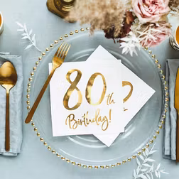 Paper Napkin, Gold, White, 20 pcs, Occasion: Birthday