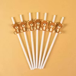 SHEIN 30Pcs Bear Paper Straws Cute Brown Bear Disposable Drinking Straw Kids Birthday Baby Shower Party Decoration Supplies,1st Birthday Party DIY Decoratio
