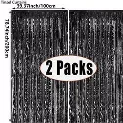 SHEIN 2/3/5 Pcs Black Party Backdrop Metallic Foil Fringe Metallic String Curtain, Birthday Party Wedding Decoration Gift Supplies