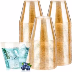 SHEIN 100pcs 9OZ Glitter Plastic Cups,Gold Cups, Clear Plastic Tumblers, Gold Glitter Cups, Cups For Wedding,Thanksgiving,Birthday Party Cup,Baby Shower Par