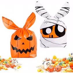 SHEIN 50pcs-Halloween Candy Bags - Set Of 50 Plastic Bunny Ear Snack Bags For Trick Or Treat, Halloween Party Decorations And Favors - Cute Cookie Gift Bags
