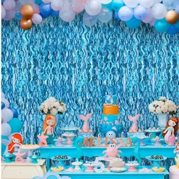 SHEIN 1pc/2pcs/3pcs Blue Wavy Tassel Curtain - Shiny Ocean Wave Waterfall Ribbon, Blue Water Flowing Backdrop For Beach Party, Summer Mermaid Underwater Wor