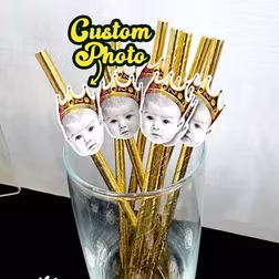 Shein 12 Pcs Custom Face King Crown Birthday Straws