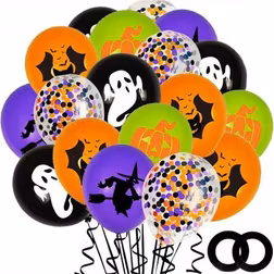SHEIN 50PCS Halloween Party Balloons Decorations, 12 Inch Black Orange Purple Green Confetti Balloons For Halloween Birthday Bachelorette Party Decorations