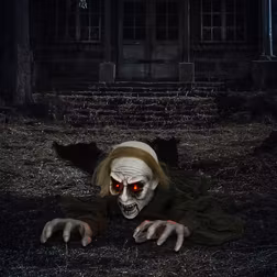 167 cm Halloween Outdoor Decoration Crawling Zombie, Sound Activated - Green - One Size