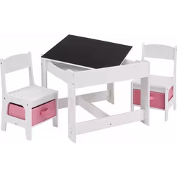 Liberty House Toys Kids White Table & Chair Set with Pink Storage Bins, White