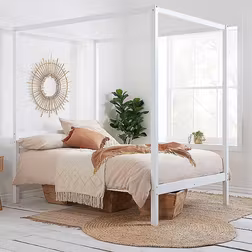 Four Poster Bed Double Birlea Mercia White 4FT6 Solid Pine Frame Canopy