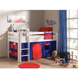 Loftbett, Weiß, Blau, Material: Polyester, Holz, Stoff