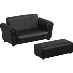 HOMCOM 2 Seater Toddler Chair Kids Twin Sofa Childrens Double Seat Chair Furniture Armchair Boys Girls Couch w/ Footstool (Black) Aosom UK