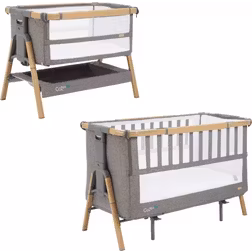 Bedside Crib, Storage Option, Height Adjustable Base, Removable Side, Beige, Grey, Material: Oak