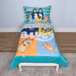 Bluey 4 Piece Toddler Bedding Set - Includes Comforter Sheet Set - Fitted + Top Sheet + Reversible Pillowcase for Boys or Girls Bed Blue