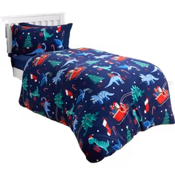 OHS Dinosaur Duvet Cover Bedding Set Sherpa Fleece Kids Christmas Gift Quilt in Dark Navy | Size: Single