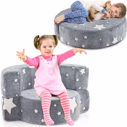 Kids Plush Couch Toddlers 2 in 1 Glow in the Dark Sofa Play Mat - Grey - One Size