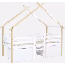 Sweeek - Kid's Bed 90 X 190 Cm Pine Wood Slatted Base Included And 2 Drawers Sienna White 212X102X188.5 Cm - One Size