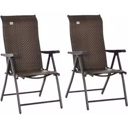 Outsunny Set of 2 Outdoor Rattan Folding Chair Set w/ Adjustable Backrest Brown