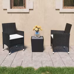 (black) vidaXL Garden Bistro Set 3 Piece Poly Rattan and Tempered Glass Multi Colours
