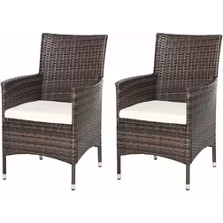 Outsunny 2 Pieces Outdoor PE Rattan Dining Chairs Set with Cushion, Garden Armchair with Armrests, High Backrest, Metal Frame Patio Wicker Furniture, Mixed Brown