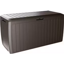 CASARIA® 290 Litre Garden Storage Box | Plastic Outdoor Tool Chest on Wheels | Lockable | Parcel Box | Log Store | Weatherproof | Wood Effect | 117x47x60cm | Brown