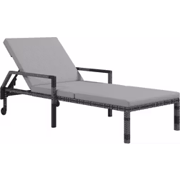 Outsunny Rattan Chaise Sun Lounger w/ Backrest & Wheels, Grey