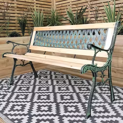 2 Seater Outdoor Wooden Cast Iron with Lattice Design Garden Patio Bench