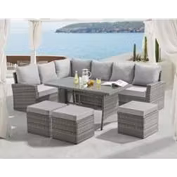EVRE 9 Seat Marilyn Corner Sofa & Dining Rattan Garden Furniture Set for Indoor Outdoor Patios Gardens Conservatories (Grey)