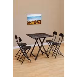 Living and Home 5 Pieces Folding Table and 4 Chairs Set Indoor Outdoor Bistro Kitchen Dining Set Furniture in Black - One Size